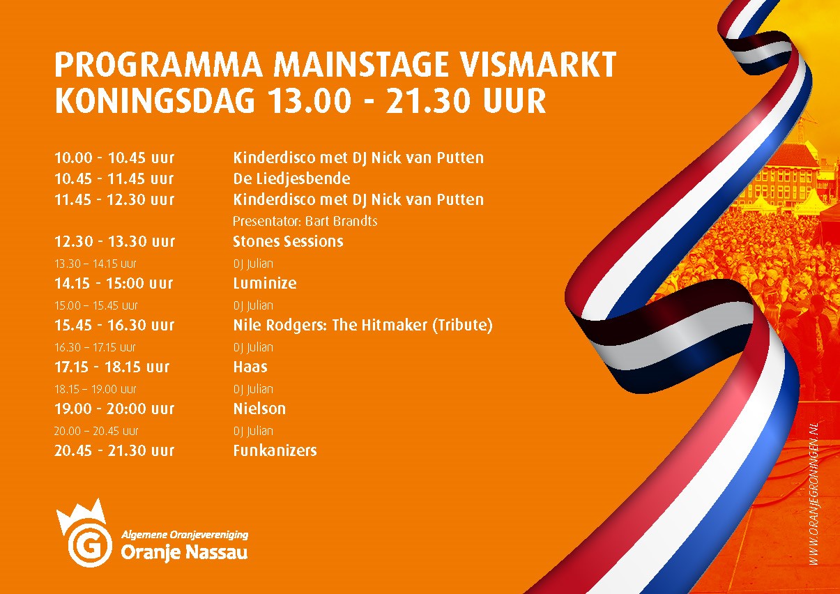Naast Nielson en Mooi Wark zijn er tijdens het oranjefeest ook optredens van Luminize, Nile Rodgers, Haas, Funkanizers, Badaboem, Boulevard en Luftwaffel. Bekijk hieronder het schema.