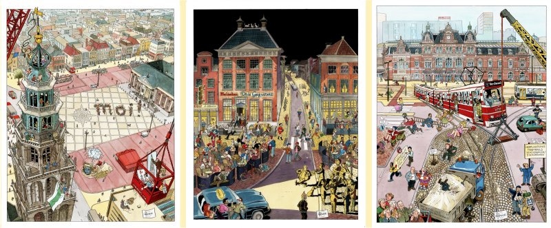 Frans Le Roux is vooral bekend geworden met zijn druk bevolkte en hilarische scènes die gesitueerd zijn in nauwkeurig getekende stedelijke omgevingen. Naast zijn vele Groninger stadstekeningen brengt hij ook de grote wereldsteden in beeld voor de serie Cities of the World van Ravensburger. De tentoonstelling laat ook het vele andere strip- en cartoonwerk zien dat de tekenaar in de afgelopen 45 jaar heeft vervaardigd.