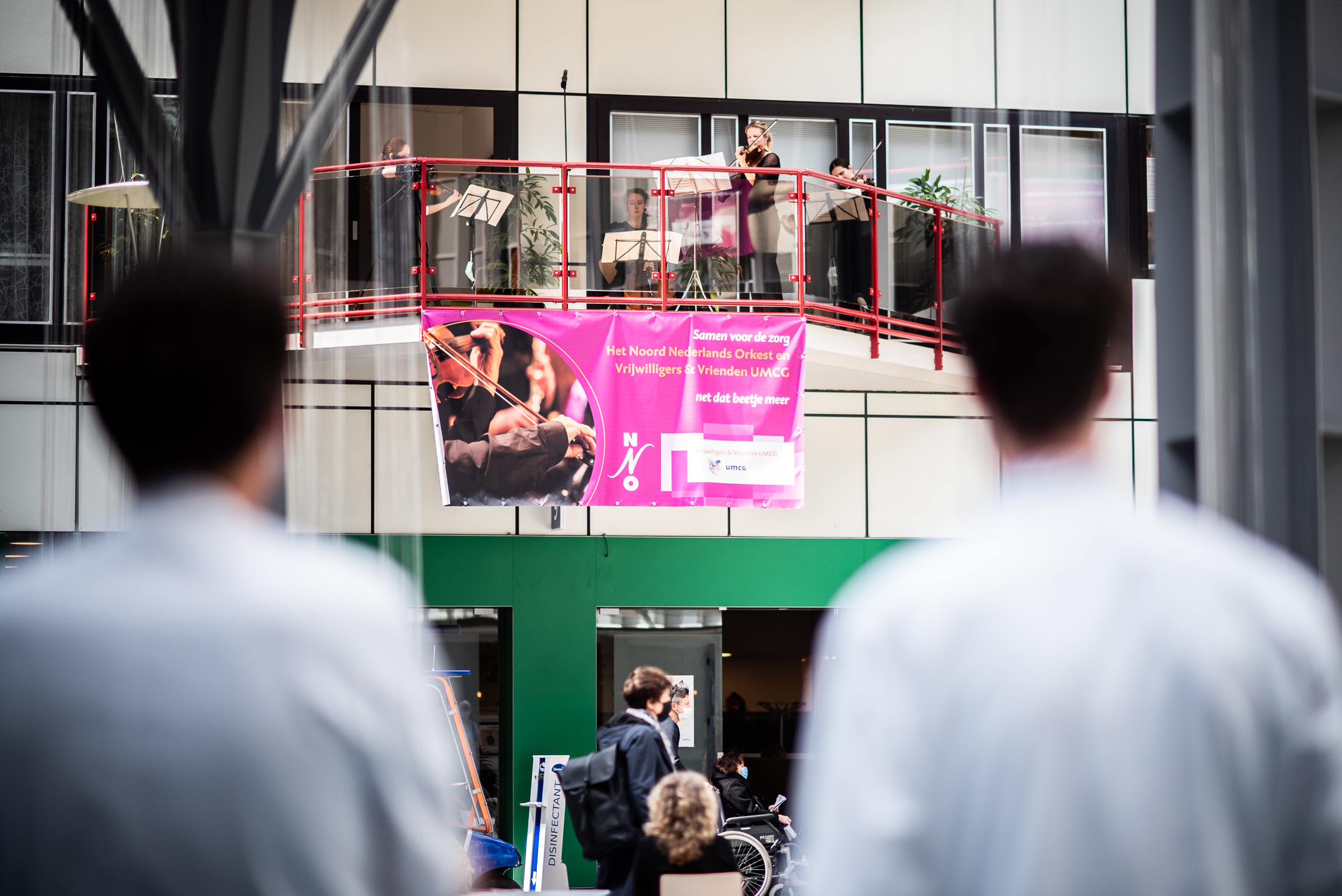 Het Van Hemel ensemble bracht een half uur lang werken van Brahms, Bach, Oscar van Hemel en Torelli. Het verrassingsconcert werd mogelijk gemaakt door Vrijwilligers & Vrienden UMCG. Uiteraard werden hierbij alle coronamaatregelen in acht genomen. De musici werden vooraf getest met een sneltest en waren allen negatief.