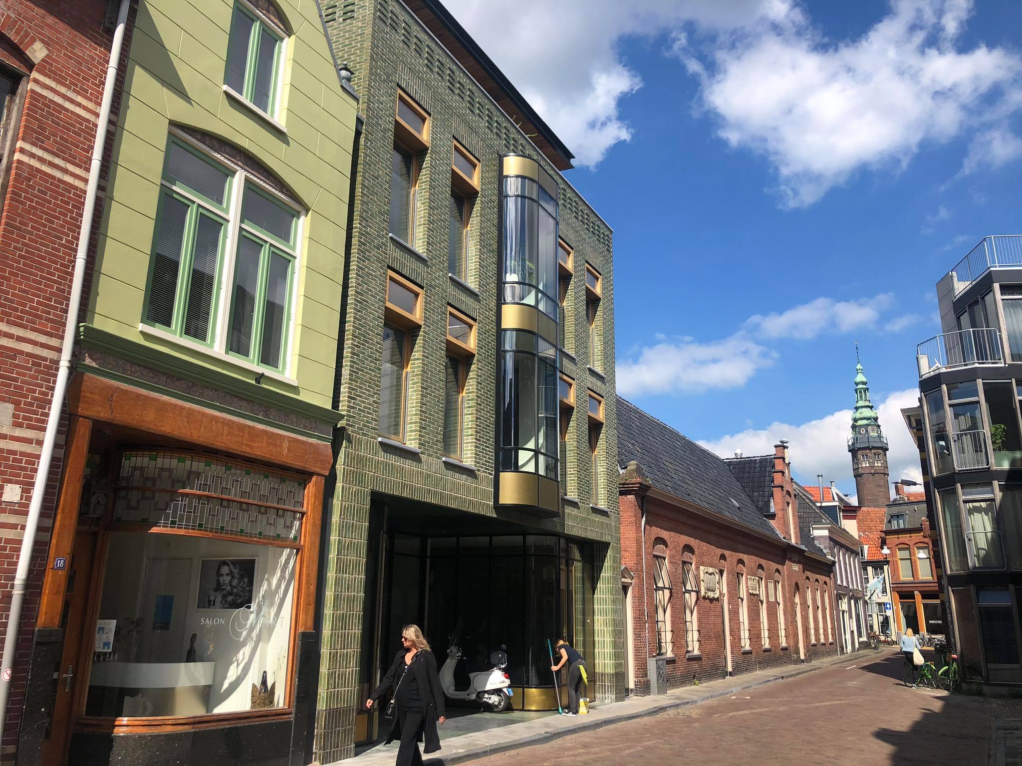 Opmerkelijk is ook de situatie als je binnen bent. Staand in de erker heb je uitzicht op drie historische torens in de Groningse binnenstad, aldus de architect.