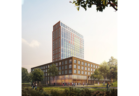 Het u-vormige complex, dat wordt ontwikkeld door Borgheese Real Estate en Urban Developers en is ontworpen door architectenbureau INBO, zal in totaal 698 studentenwoningen gaan tellen.