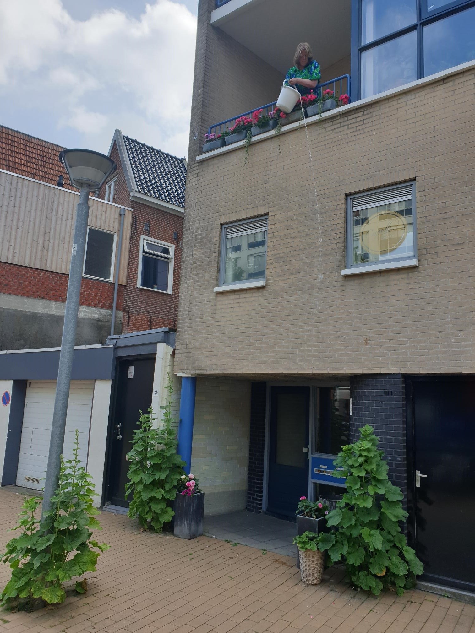 Het balkon van Gea bevindt zich in de binnenstad, waar de buitenruimtes voor 85 tot 100% zijn versteend en waar het beduidend warmer wordt op warme dagen dan elders. De straat waar Gea woont wordt binnenkort omgebouwd tot busbaan. Voor demping van het geluid heeft Gea zelf al pogingen gedaan om te vergroenen. Zo laat ze al stokrozen tegen de gevel groeien en plaatste ze bloembakken voor de portiek. De stokrozen blijken een groot succes. “Toeristen die door de straat lopen, gaan er mee op de foto” vertelt Gea.