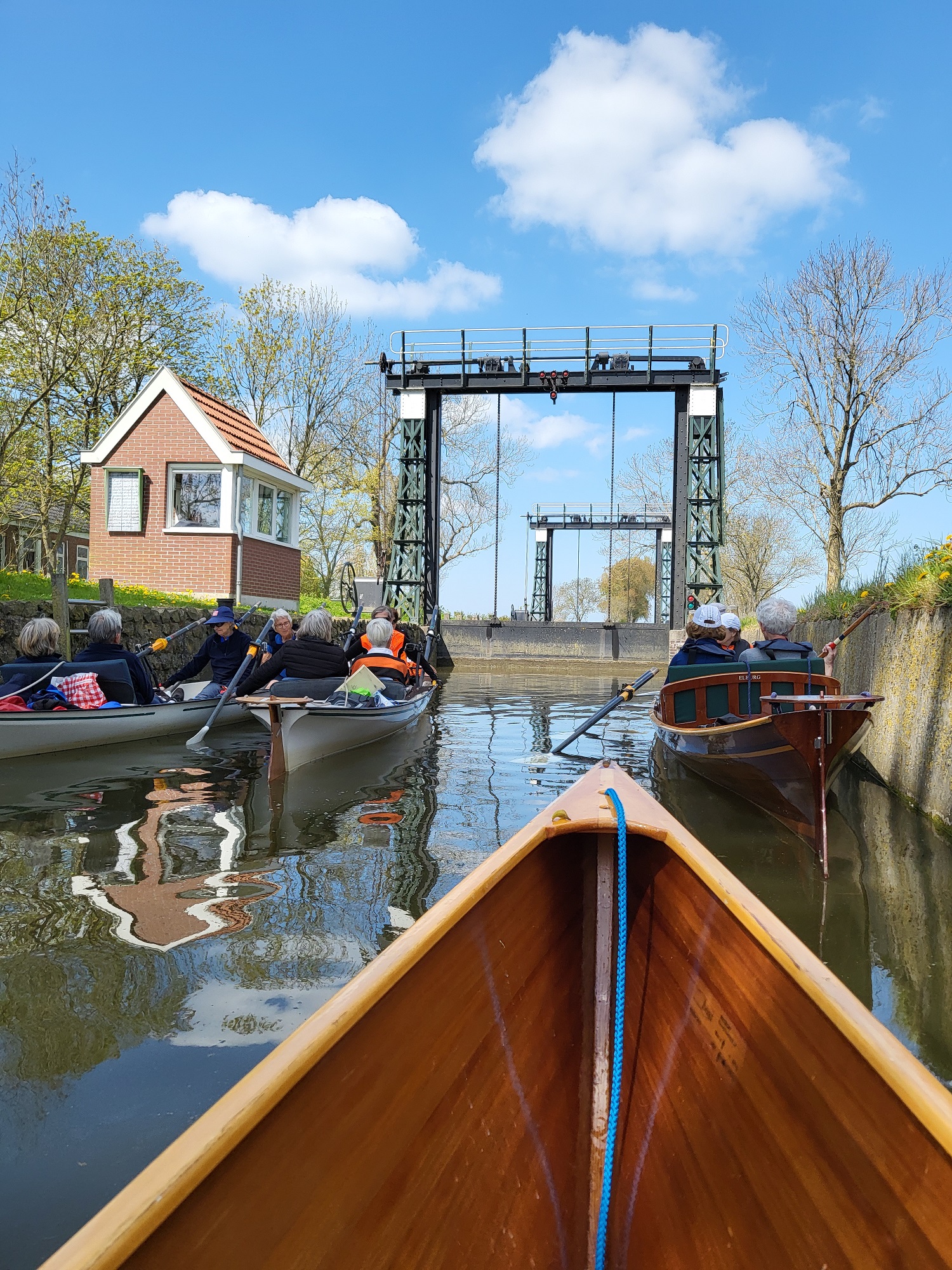 Op de foto boven de binnenkomst in Groningen aan de Hoger der A, en op de foto onder wachtende toerroeiers voor de prachtige antieke sluis Oosterdijkshorn op de Westerwijtwerdermaar. (Foto’s: A.C. van der Graaf).