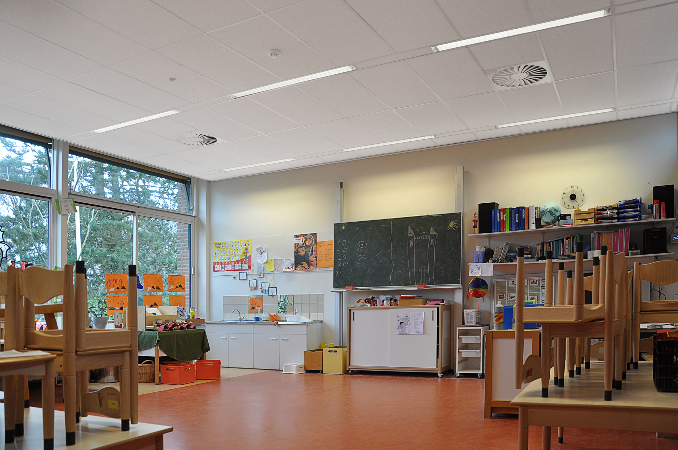Foto onder: Elk klaslokaal heeft een gezond en fris binnenklimaat door de temperatuur en CO2-concentratie continu te meten en optimaal te regelen.