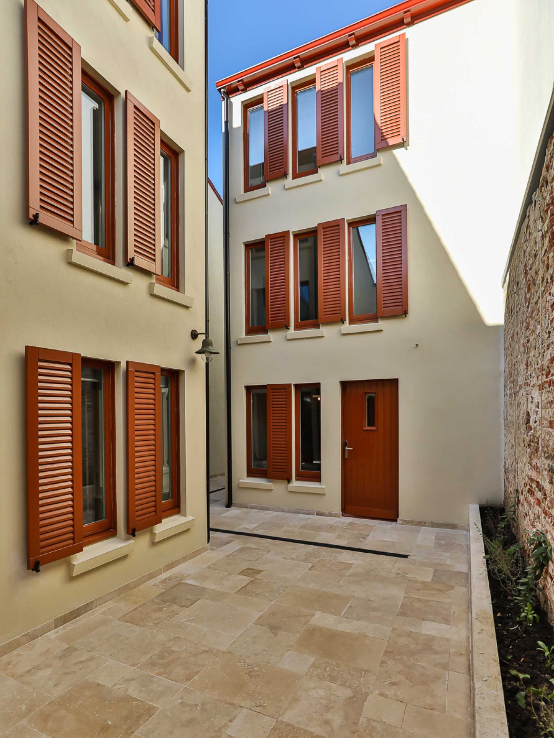 “De afwerking en uitstraling met de pastelkleurige, met mineraalverf beschilderde gevels en oplopende bestrating die wat rommelig oogt, doet een beetje Mediterraans aan. Dat uitgangspunt diende als concept voor het ontwerp van dit project. De gerealiseerde appartementen zijn bedoeld als ware het een klein dorpje met een eigen identiteit”.