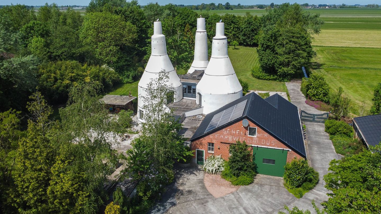 “ In deze drie kalkovens werden jaren geleden schelpen gebrand voor metselkalk. In de jaren '80 zijn deze ovens door de huidige bewoner met veel liefde en passie omgetoverd tot een unieke woning. De drie ronde ovens geven zowel het exterieur als het interieur van de woning een unieke uitstraling.”