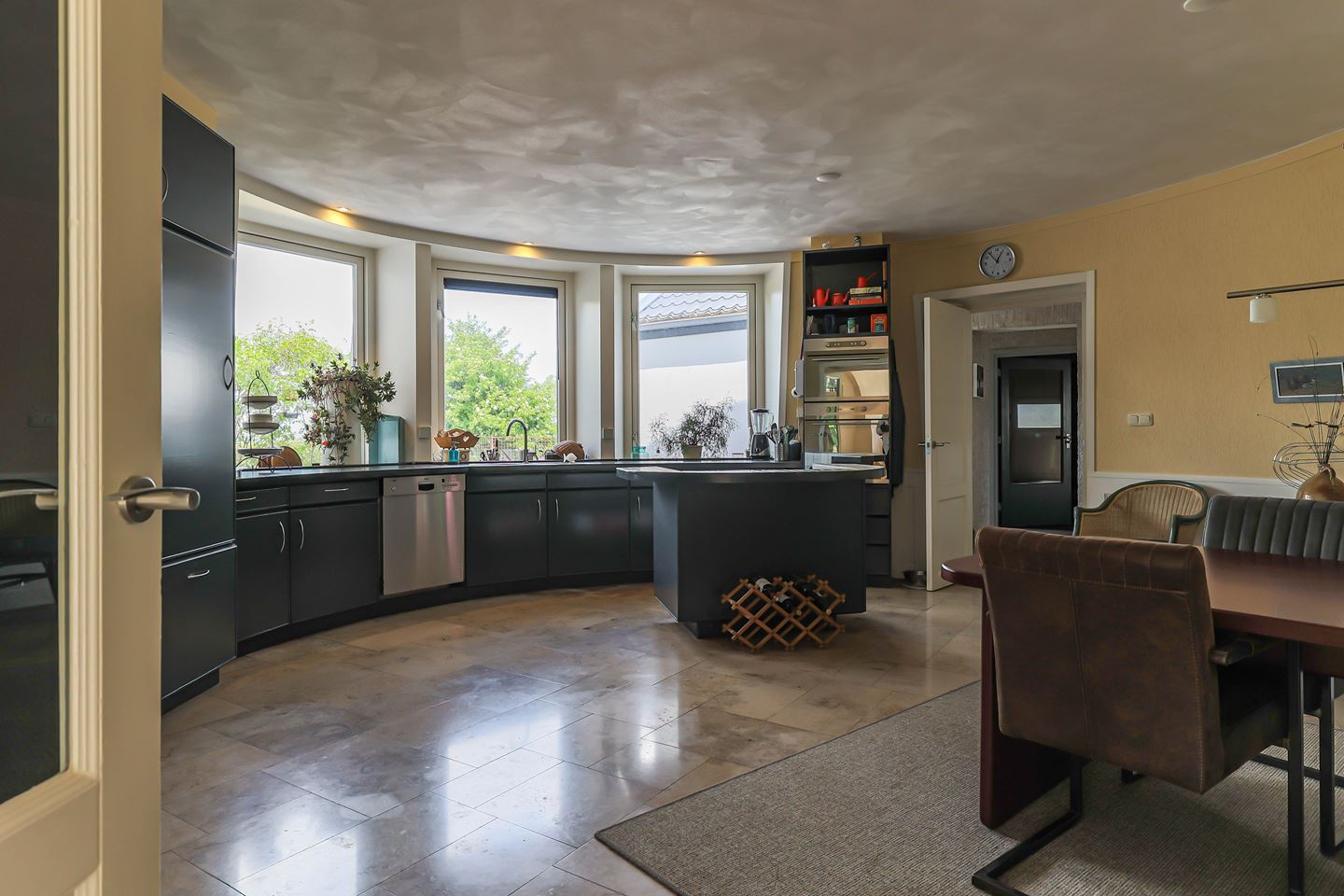“Met een prachtig aangelegde tuin rondom de woning is er geen plek in de tuin dat verveeld. Maak een wandeling langs je eigen bospad, pluk fruit van je eigen fruitbomen of zit tijdens de lange zomeravonden heerlijk onder de overkapping met een haardvuurtje. Op deze unieke locatie woon je midden in de natuur zie je met enige regelmaat de vele reeën en hazen door de tuin springen. Grenzend aan de woning is de grote schuur (van origine de blusschuur) van 81 vierkante meter en een aparte garage te vinden.”