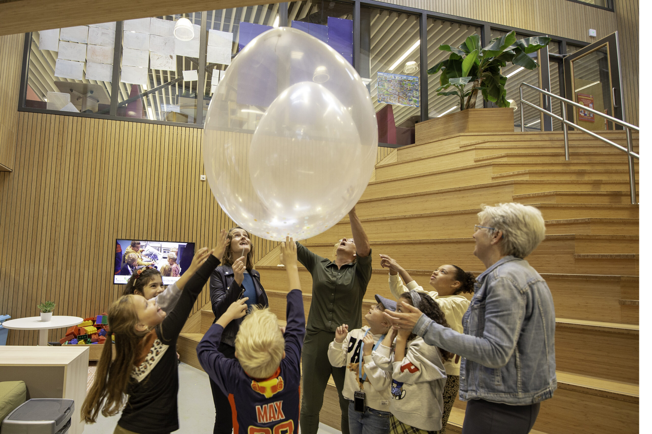 Het nieuwe IKC is een plek waar kinderen de ruimte krijgen om zichzelf en hun talenten te ontdekken. Een groep schoolkinderen leidde de gasten rond. Niet langs traditionele klaslokalen, maar over de grote, open leerpleinen waar verschillende klassen aan het leren zijn. Met relaxnissen, een kunstatelier en een enorme podiumtrap kunnen kinderen zelf kiezen hoe ze het liefste werken.