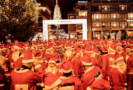 De Santa Run Groningen is misschien wel de meest sfeervolle loop waar u met vrienden, buren, collega's of familieleden aan mee kunt doen. Het parcours bestaat uit twee rondes van in totaal 5 km met de start op de Ossenmarkt en de finish op de sfeervolle Grote Markt. Wilt u één ronde van 2,5 km lopen? Dat mag natuurlijk ook.