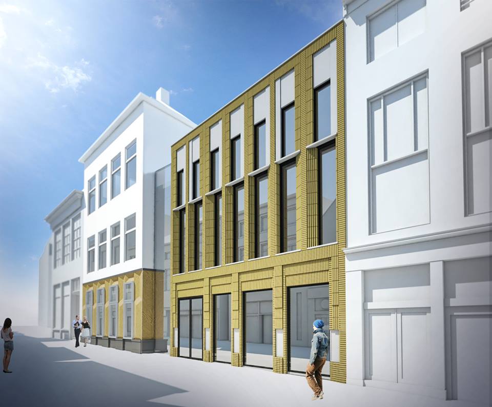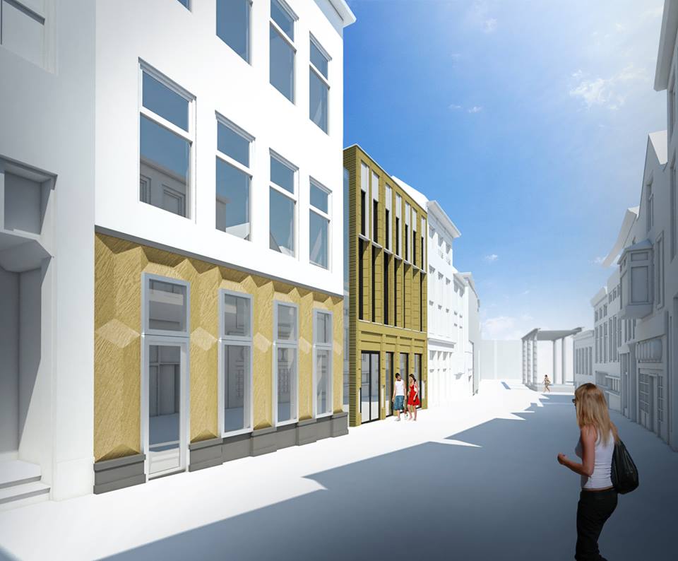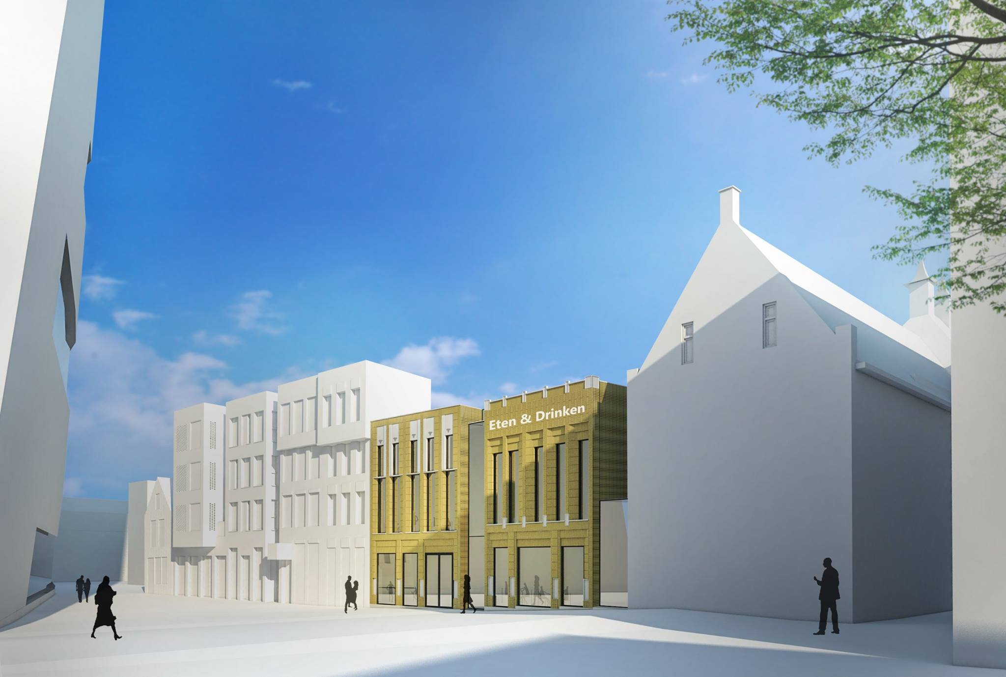 Onlangs plaatsten we een foto van de nieuwbouw van Vapiano aan de Nieuwe Markt, naast het Groninger Forum. Dat gebouw, en trouwens die hele gevelwand, is ontworpen door jonge Groningse architecten. De gevelwand loopt vanaf de Nieuwe Markt tot in de Poelestraat. Hierbij nog wat artistimpressies van het ontwerp van het pand van Vapiano door het Groningse architectenbureau Vector.i, ook gezien vanuit de Poelestraat.