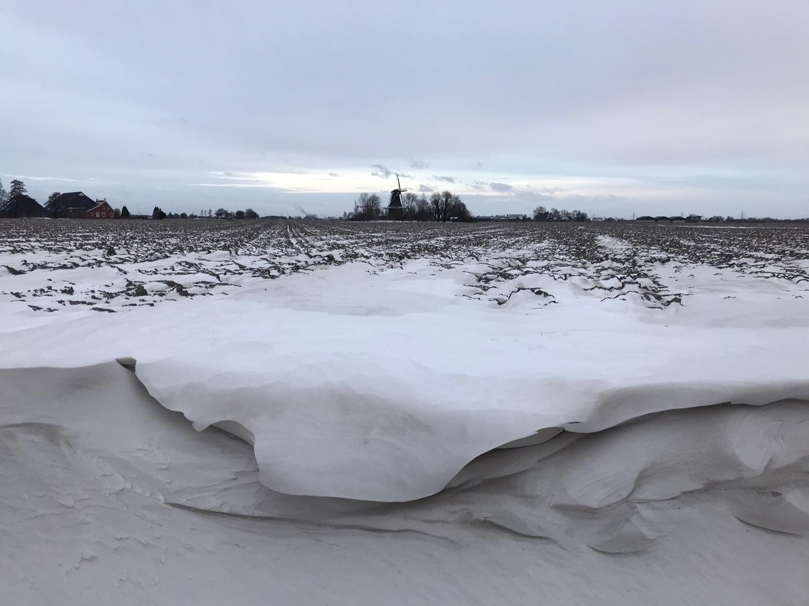 aardig wat sneeuwduinen ontstaan. Zeker in noord-Groningen, waar bijgaande foto’s zijn genomen nabij Garsthuizen.